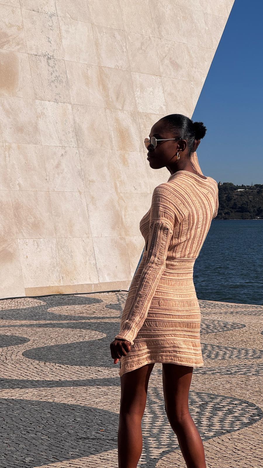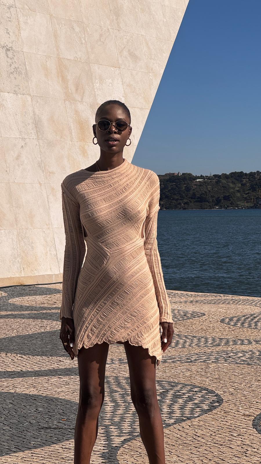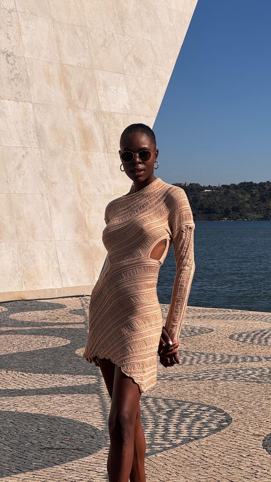 Deslumbre com este vestido em croché artesanal que evoca a beleza dourada da areia ao sol. Uma peça única que combina trabalho manual requintado com um design contemporâneo, perfeita para quem aprecia moda exclusiva e sofisticada.